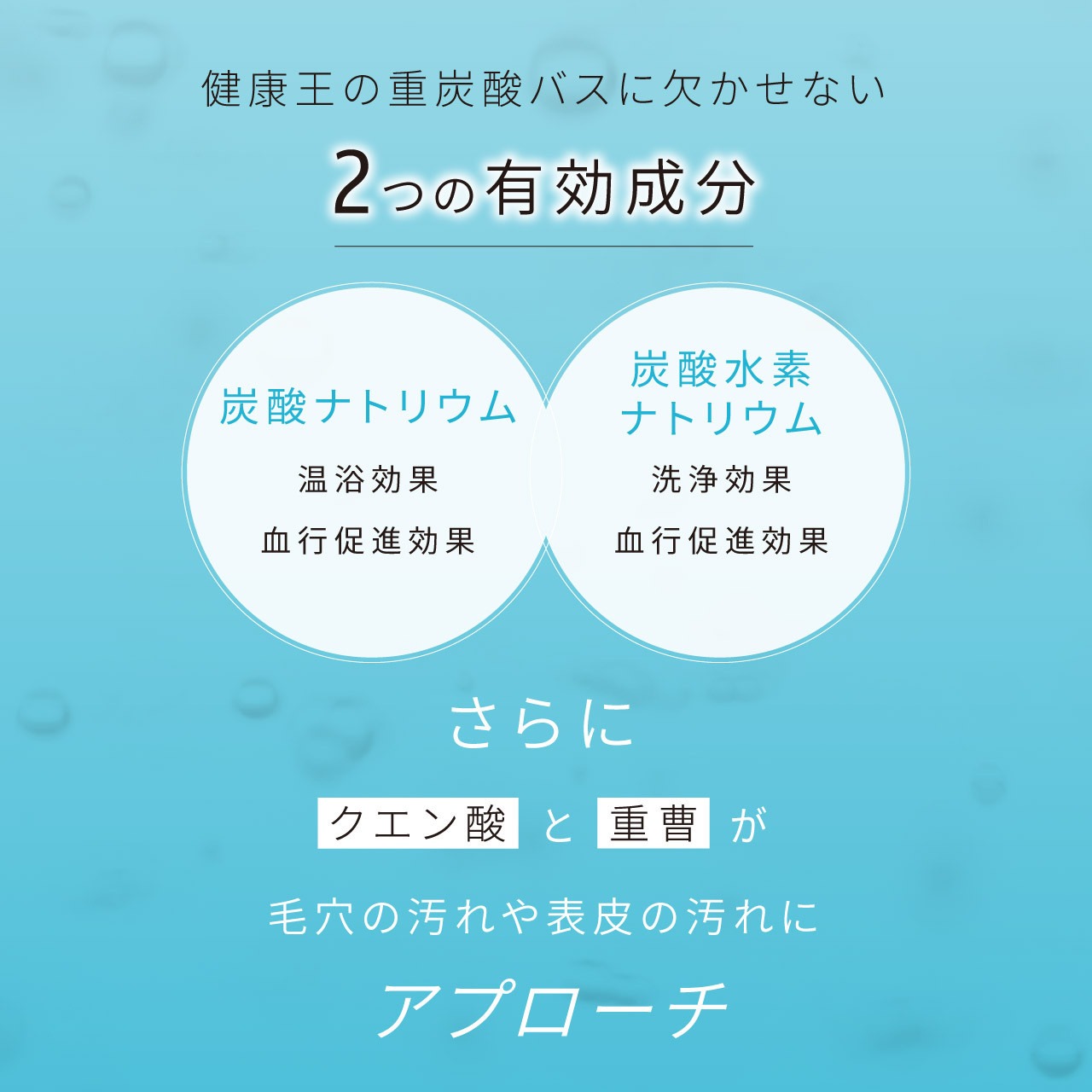 重炭酸バスは無香料・無着色で体に優しく、お子様にも大変おすすめです。